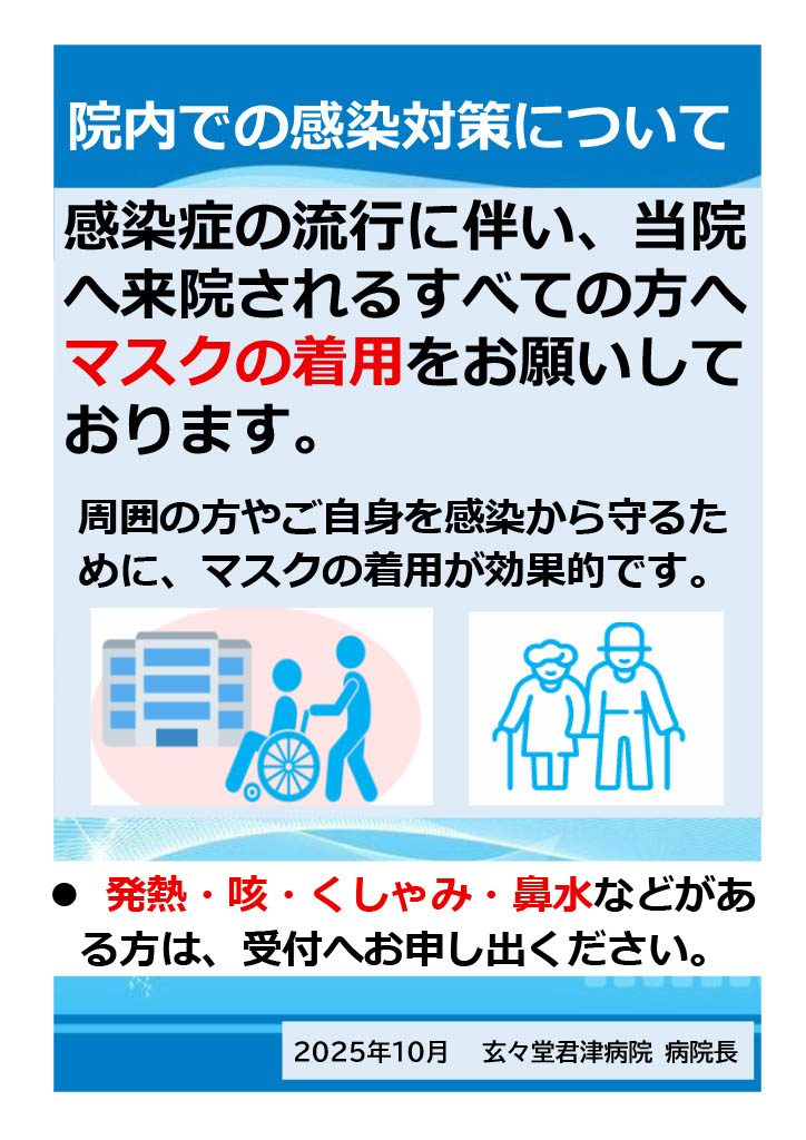 - 診療上の理由等から、面会をお断りする場合があります、ご理解ご協力をお願いします。