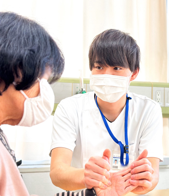 私は緊張しやすい性格で、患者さんとコミュニケーションを取ることに苦手意識がありましたが、プリセプターの先輩方が問診の進め方やコミュニケーションの取り方を指導してくれ、今ではスムーズにリハビリを進めることが出来ています。