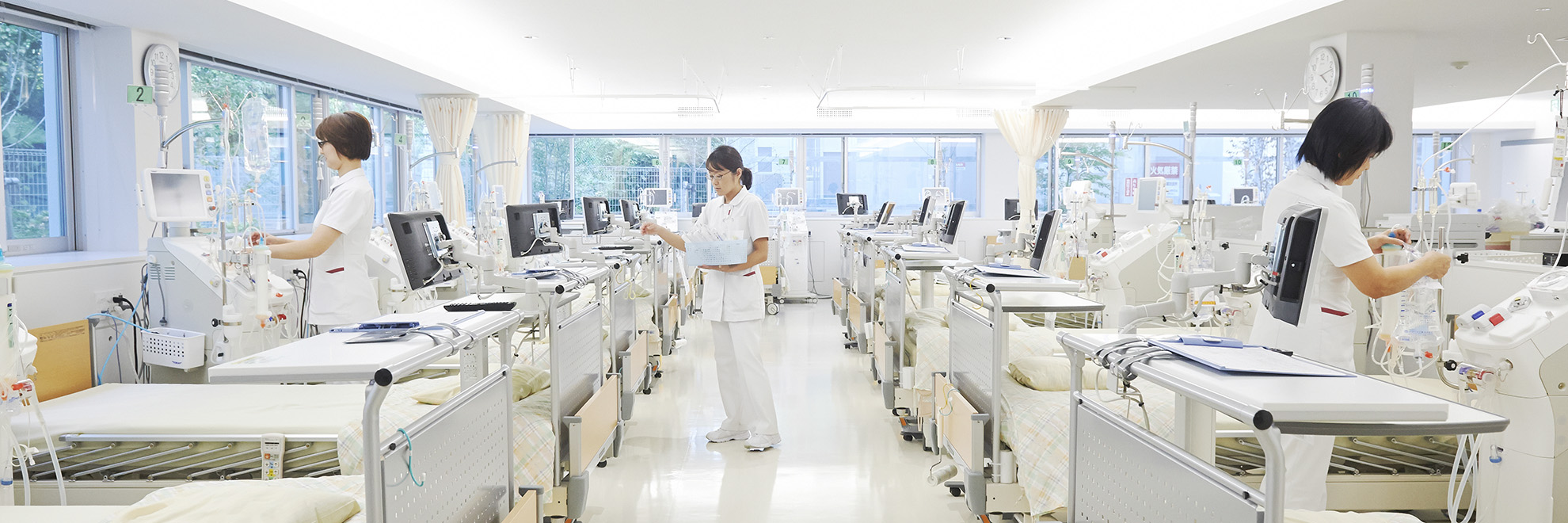 外来透析診療のクリニックで、21床の透析施設を完備。急性疾患の際は向かいにある玄々堂君津病院へ。医療・介護の連携がスムーズです。